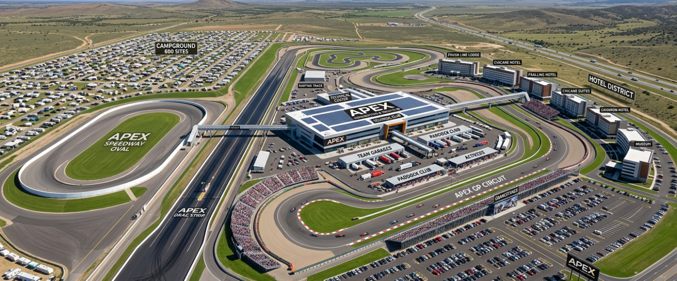 The expansion follows a 36-month phased timeline, beginning with the construction of the educational labs and site preparation, followed by the paving of the dragstrip and campground. Once complete, the resort will offer a diverse revenue mix—including corporate retreats, "Arrive & Drive" rentals, and spectator events—positioning Jackson Speedway as a modernized, accessible alternative to large-scale regional venues.